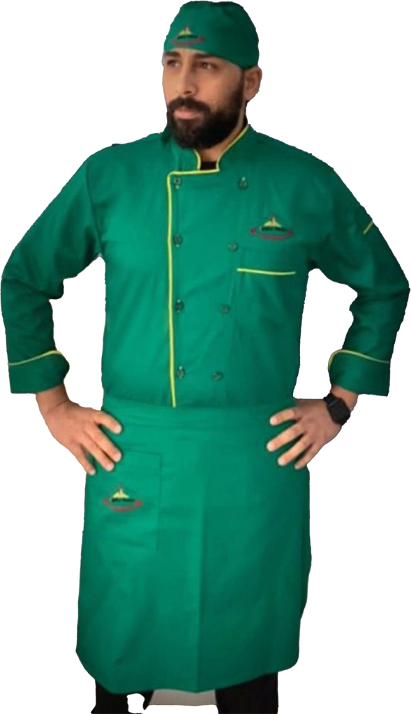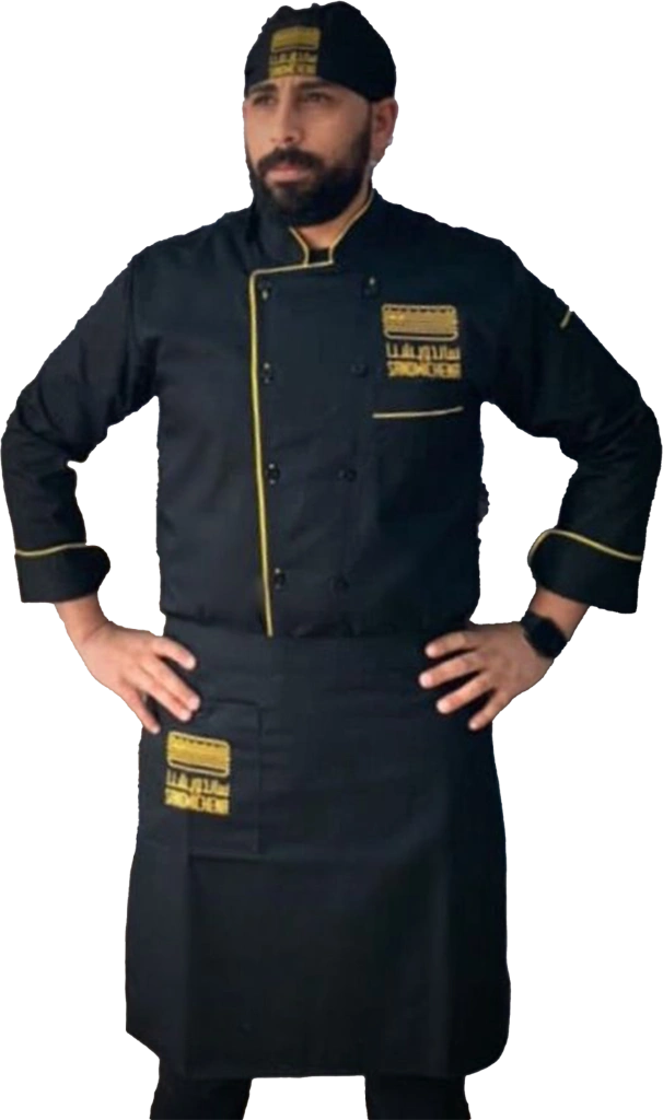 تم تصميم بدلة الشيف هذه لتوفر لك الراحة والأناقة في نفس الوقت. تتميز بتصميمها العصري والأنيق، مما يجعلك تبدو محترفًا في كل الأوقات. كما أنها مزودة بجيوب متعددة لتخزين أدواتك المطبخية، مما يسهل عليك الوصول إليها عند الحاجة.